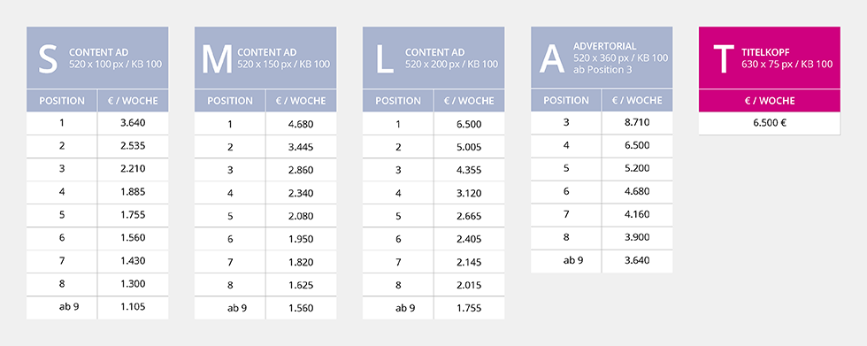 Anzeigen-/Druckunterlagenschluss: 3 Werktage vor Erscheinungstermin